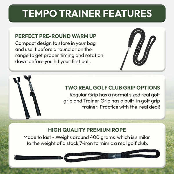 - Your New #1 Golf Training Aid - perfect your golf swing tempo with this weighted rope swing trainer. Created to develop proper body rotation and arm-body connection, which can lead to improved consistency, power, and a better strike.