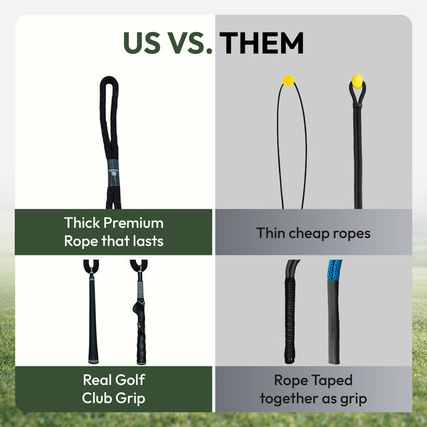 Stop settling for those cheap thin ropes and handles that are taped together to look like a grip. Not only will they not last, but they won't feel like you're actually holding and swinging a golf club.